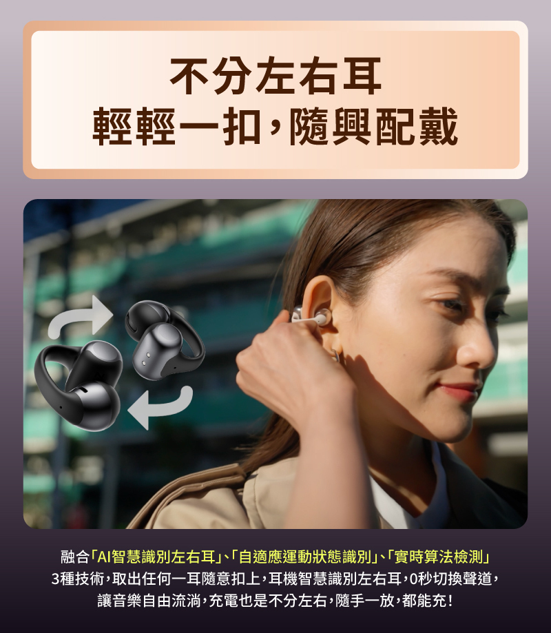 AI 智慧識別左右耳,自動切換左右聲道及自定義操作