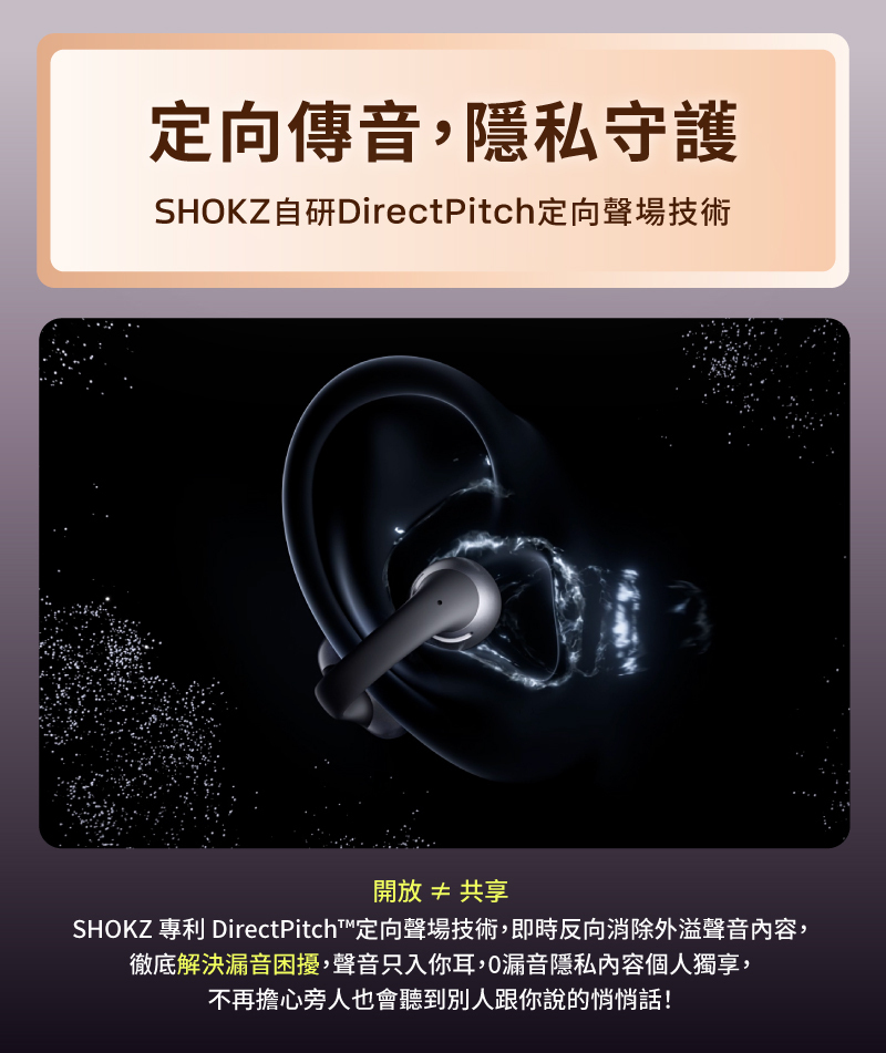 Shokz DirectPitch™ 定向聲場技術,解決漏音困擾