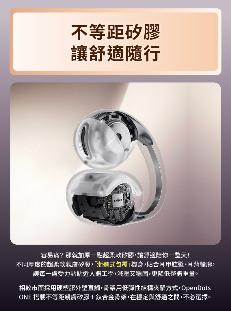 不等距親膚矽膠 + 鈦合金骨架,配戴舒適穩固