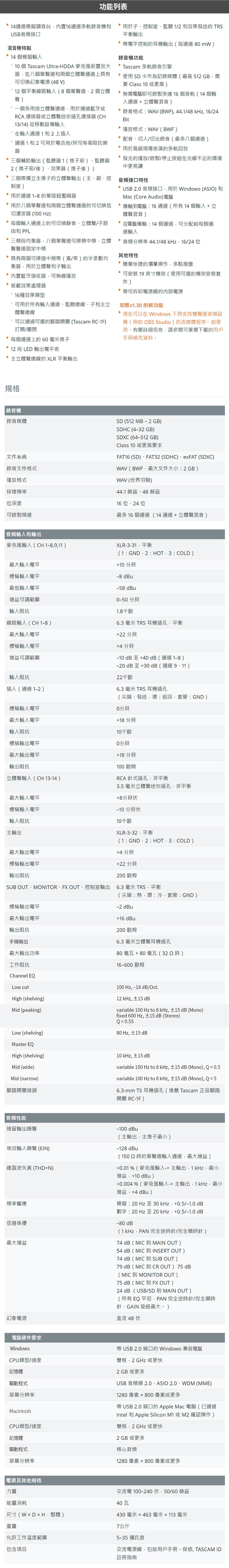 14 通道模擬調音台,內置 16 通道多軌錄音機