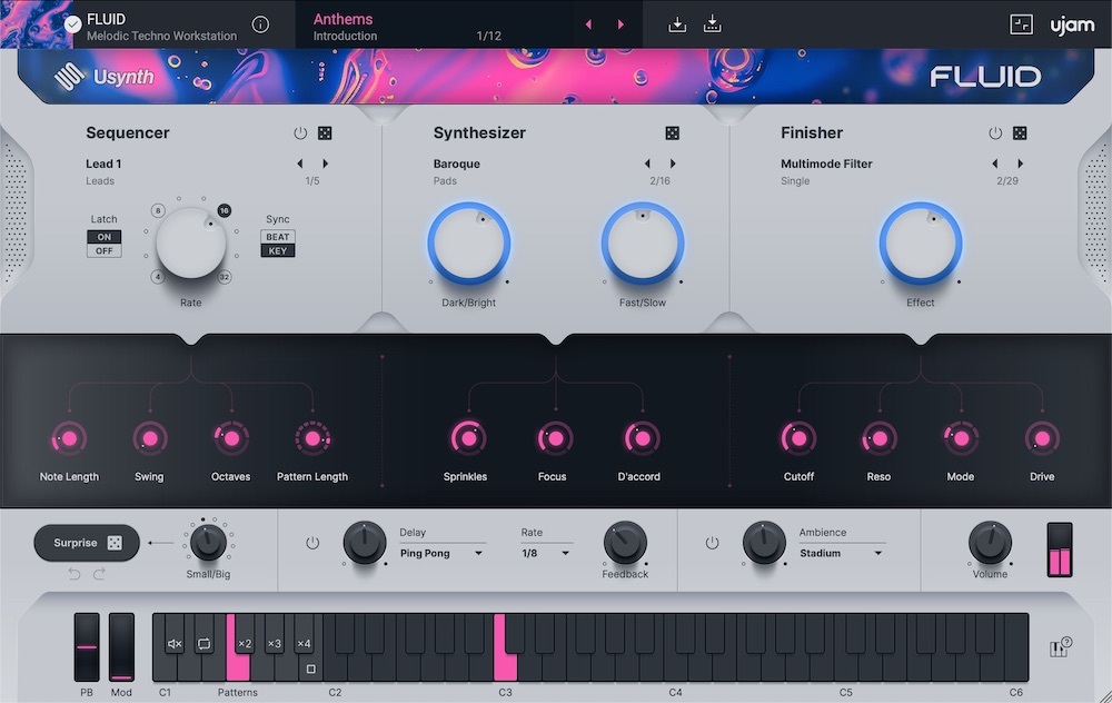利用 Usynth 及其強大的合成器引擎、 改變遊戲規則的 Finisher、靈活的內建延遲和混響單元、直覺的瀏覽器和用戶友好的介面輕鬆釋放靈感。