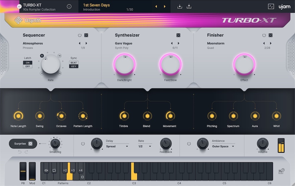 從鋼琴、貝斯、吉他、弦樂等單一樂器音色,到分層或混合的取樣與合成音色,TURBO-XT 都能勝任。無論是要打造帶有復古美學的完整編曲,還是為現代作品增添一點迷人的不完美,它都是你的理想夥伴。