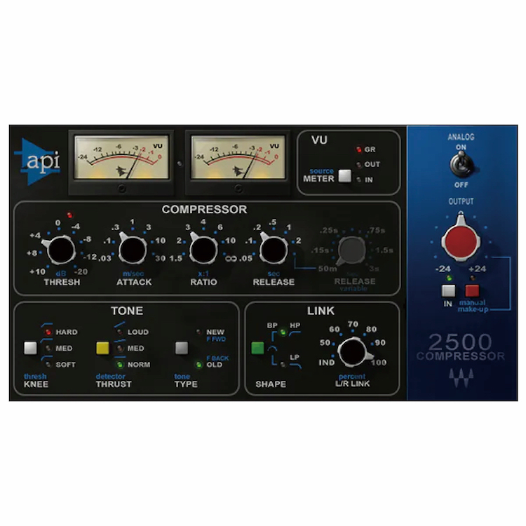 在世界各地的工作室中,API 2500 以能夠滿足幾乎任何壓縮需求的準確、精確的 VCA 類型技術而聞名。基於精確的 VCA 類型技術,API 2500 提供了多種選擇,包括壓縮器架構、衝擊力與音色。