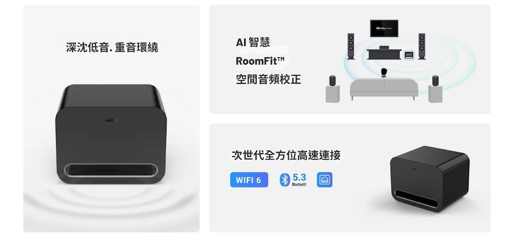 8吋客制單體、250W、25Hz、AI 智慧空間音訊校正