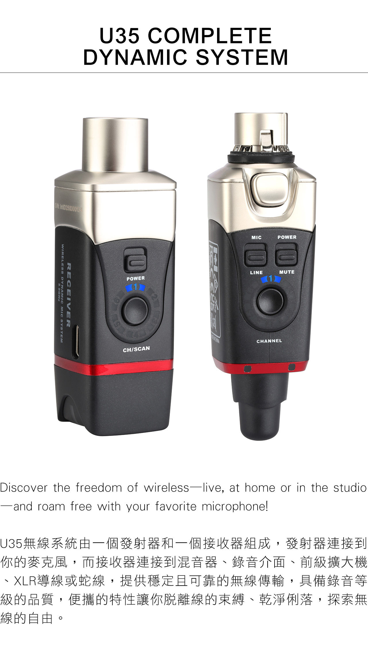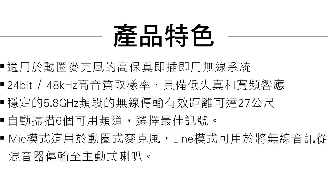 適用於各式 動圈式麥克風,無線化現場表演或演講
