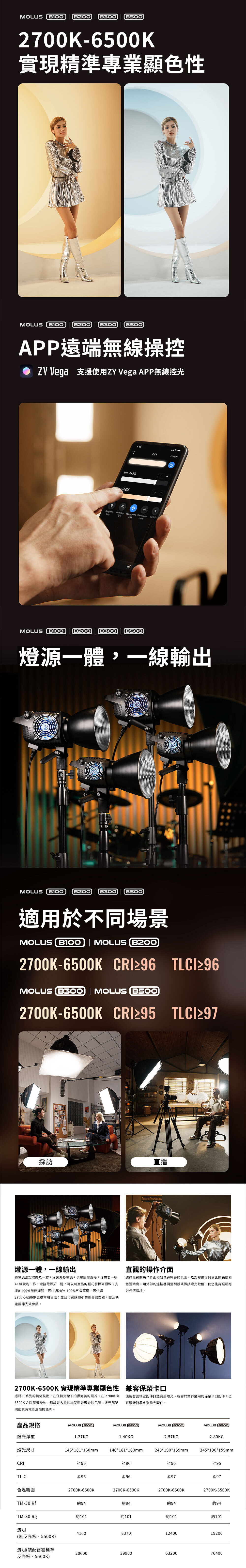ZHIYUN 智雲功率王 MOLUS B200 200W 雙色溫影視燈單燈組