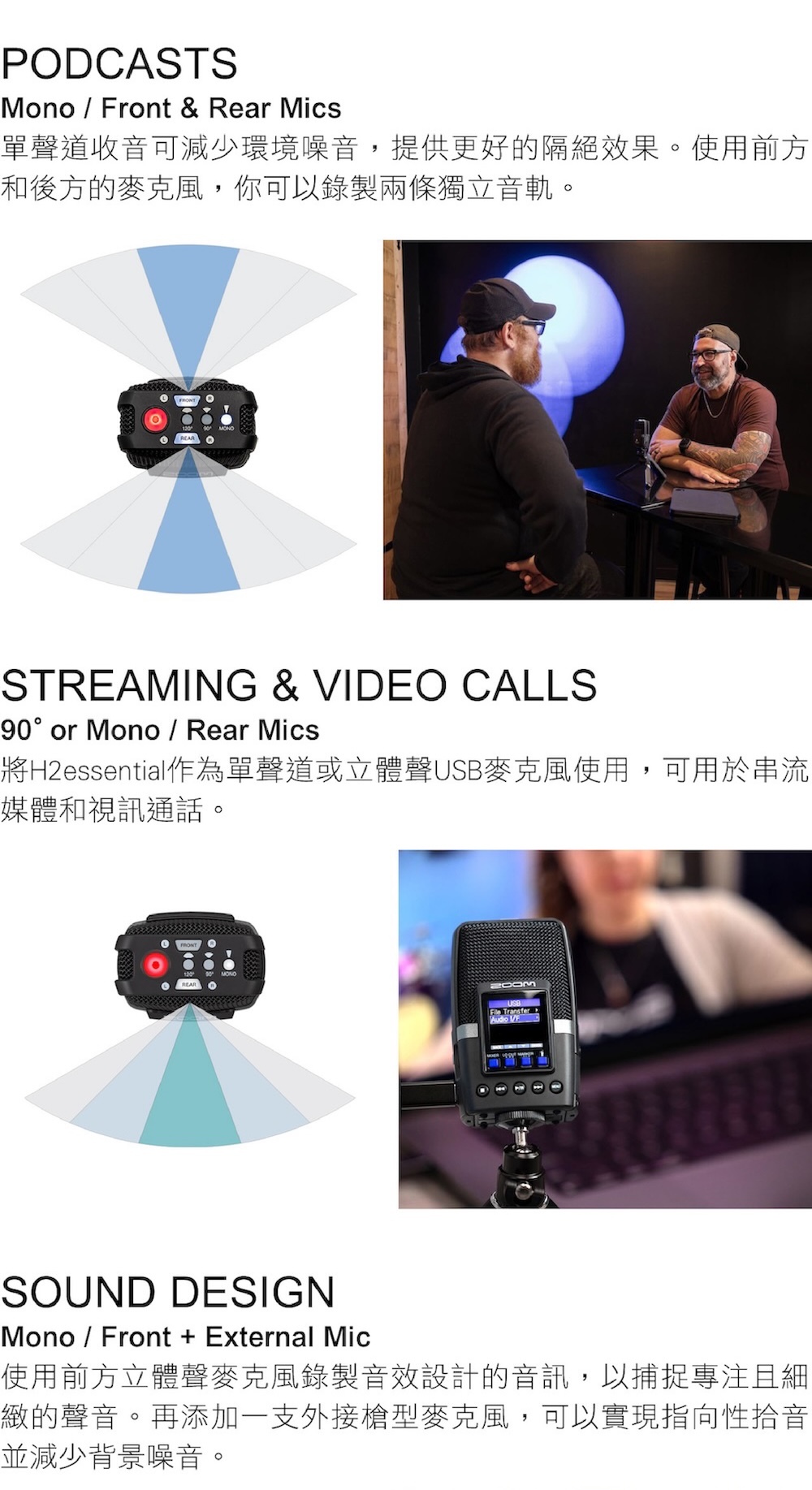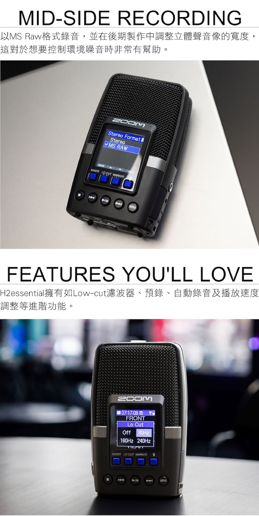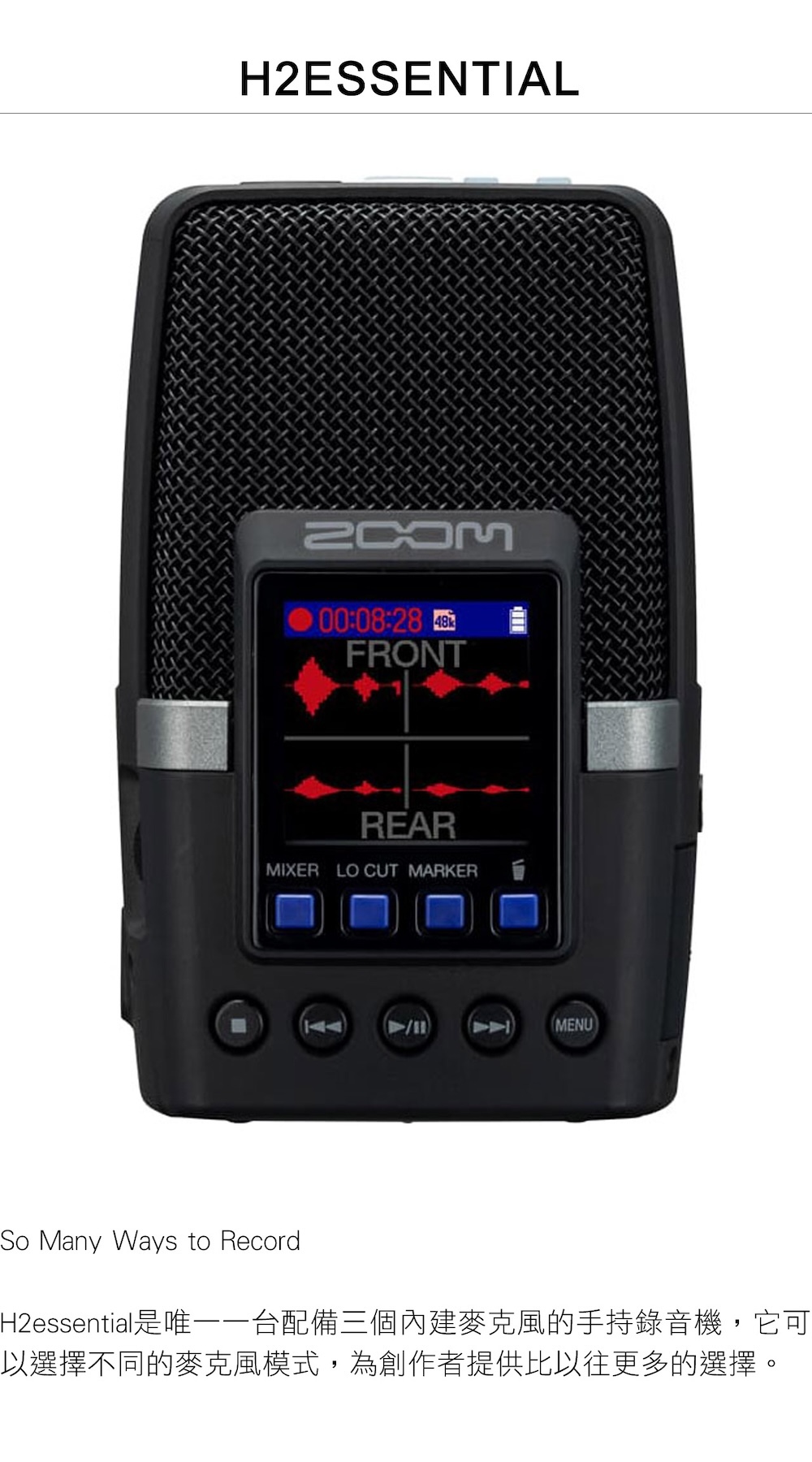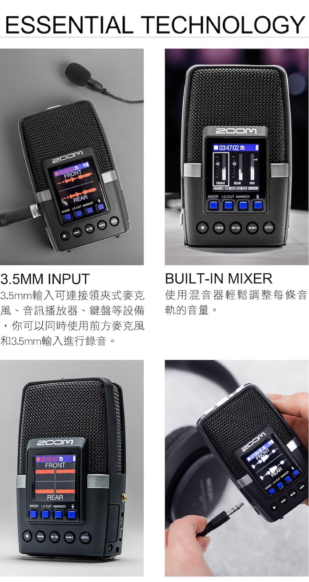 Essential 隨身錄音系列,沿襲 Zoom 優良的錄音品質